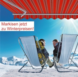 Offene Gelenkarm-Markisen gibt es jetzt mit einem Preisnachlaß von 10% besonders günstig! Die Winterpreise gibt es bis zum 20.März 2026.